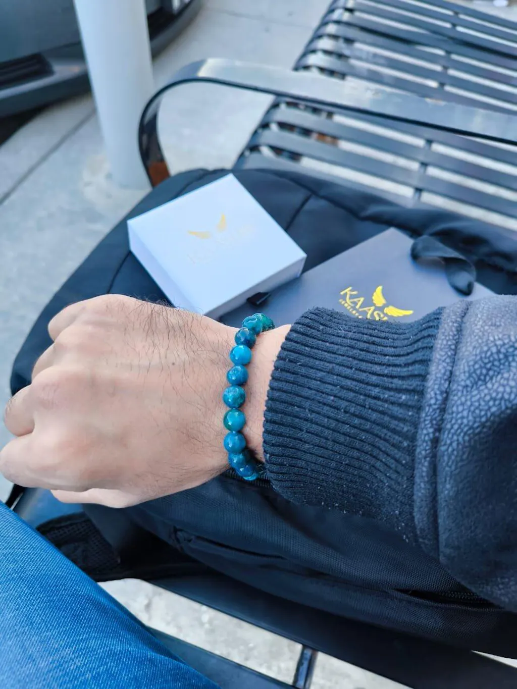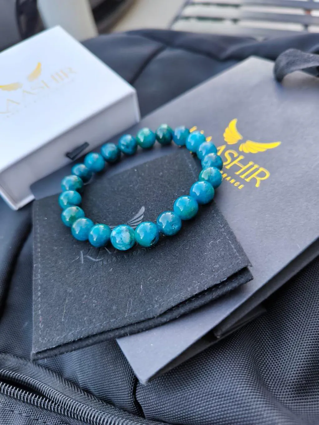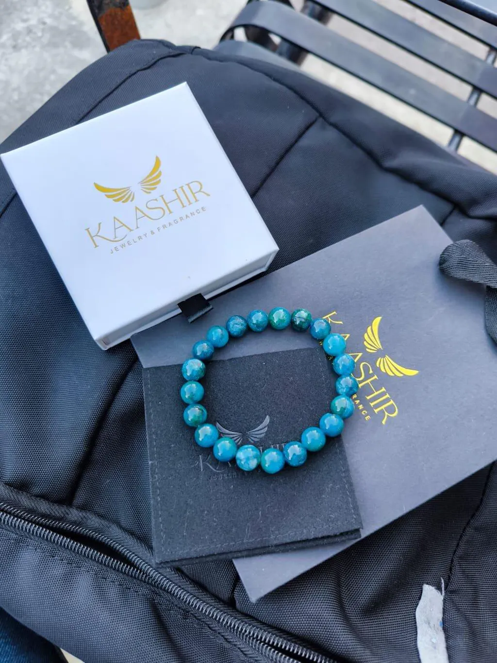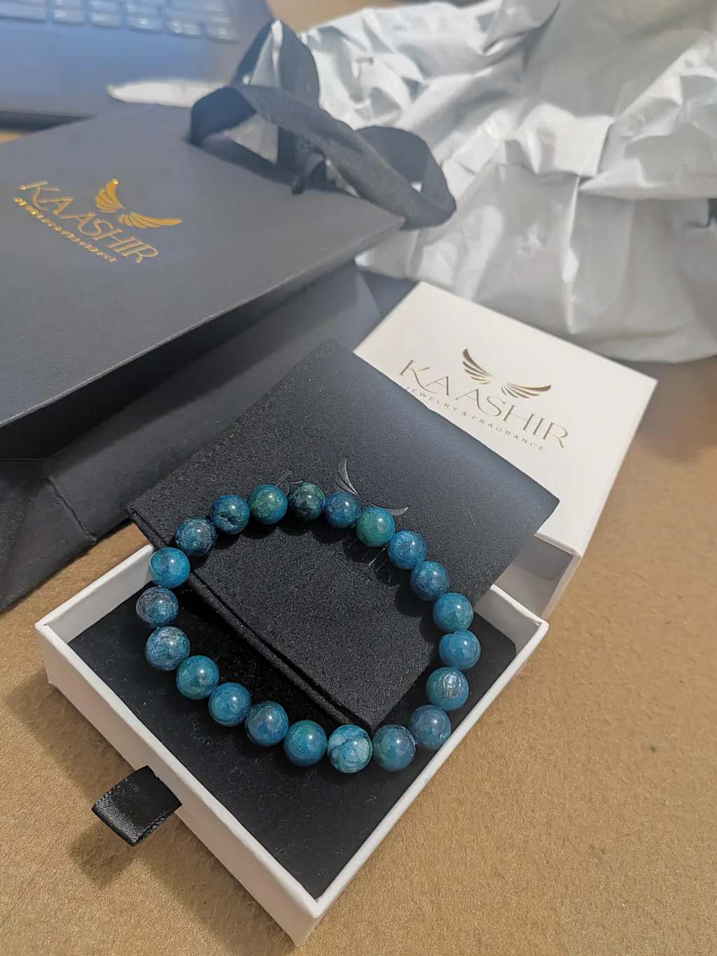 Introducing the Kaashir Blue Apatite Bracelet – handcrafted with high-quality Blue Apatite beads, designed to inspire mental clarity and enhance creativity.